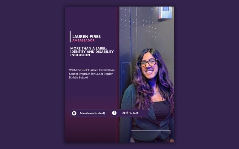 Excited for tomorrow's virtual talk on disability inclusion and my journey, to 400 K-8 students in Etobicoke, as part of the Rick Hansen Foundation School Program!
